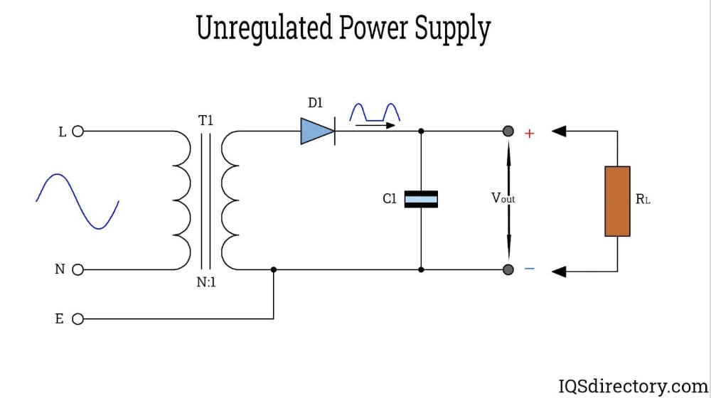 Neregulované napájacie zdroje využívajú ako vstup striedavé napätie. Striedavé napätie sa najprv privádza cez primárne svorky znižovacieho transformátora. Napätie sa zníži a odbočí cez sekundárne svorky. Teraz sa usmerní mostíkovým usmerňovačom a zmení na zodpovedajúce jednosmerné napätie. Bežné napätia sú 9 V, 12 V, 15 V a 24 V. Kondenzátor potom vyhladzuje výstupné napätie z mostíkového usmerňovača. Ako vyplýva z názvu, neregulovaný napájací zdroj nemá v obvode regulátor.