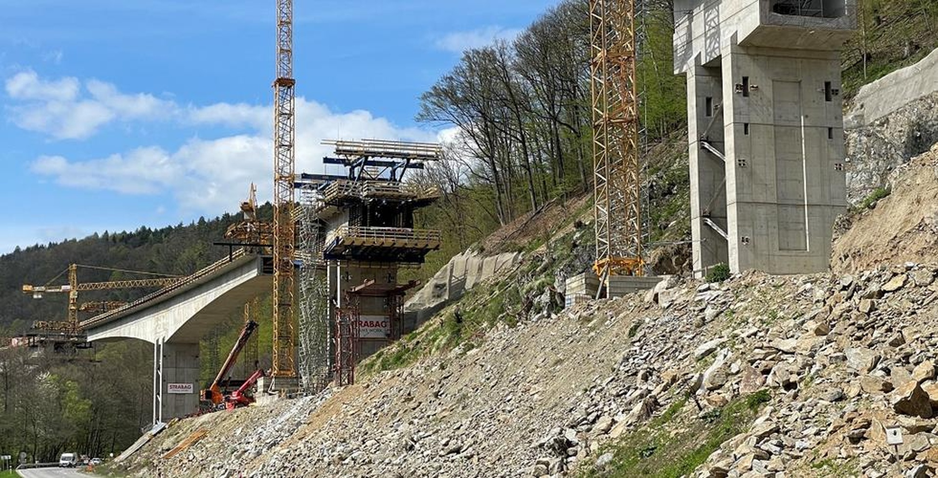 Mostní špecialisti pokračujú vo výstavbe budúcej najdlhšej estakády Slovenska v údolí Kriváňa.