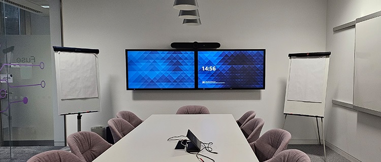 Dvakrát krajšie: dve obrazovky, jedno pekné riešenie hybridnej konferenčnej miestnosti