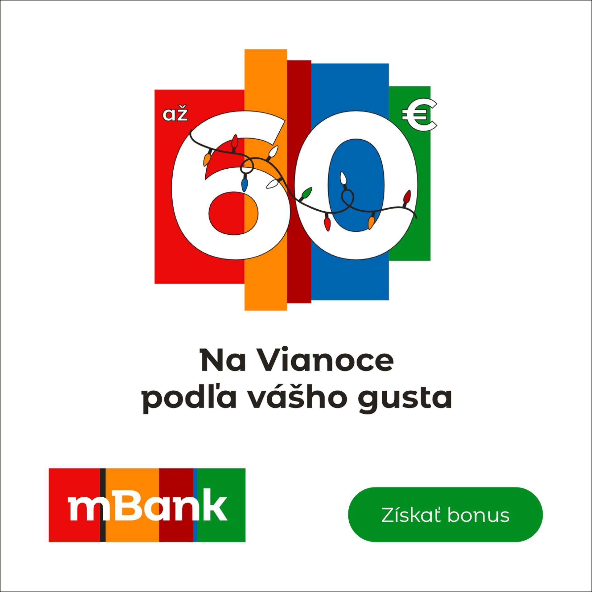 Klienti, ktorí si v mBank založia účet, získajú späť rovnakú čiastku, akú pomocou mobilu alebo šikovných hodiniek minú, a to až do výšky 60 eur. Súčasní klienti sa môžu vyplnením formulára s promo kódom „Vianoce“ zaradiť do žrebovania. Banka každých 14 dní vyberie 500 klientov, ktorí vyhrajú toľko, koľko za dané obdobie utratili pomocou mobilu alebo šikovných hodiniek, a to taktiež do výšky 60 eur. Akcia platí od 16. októbra do 15. decembra 2023.