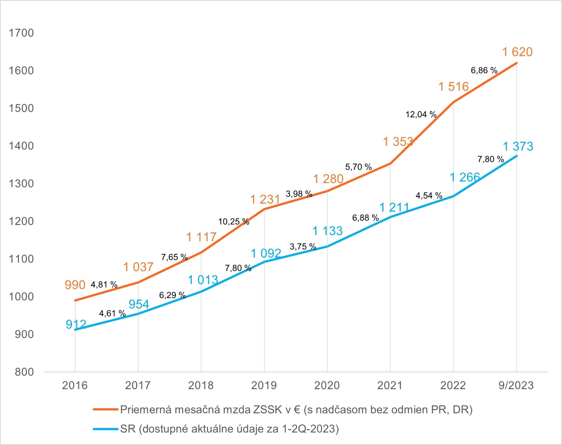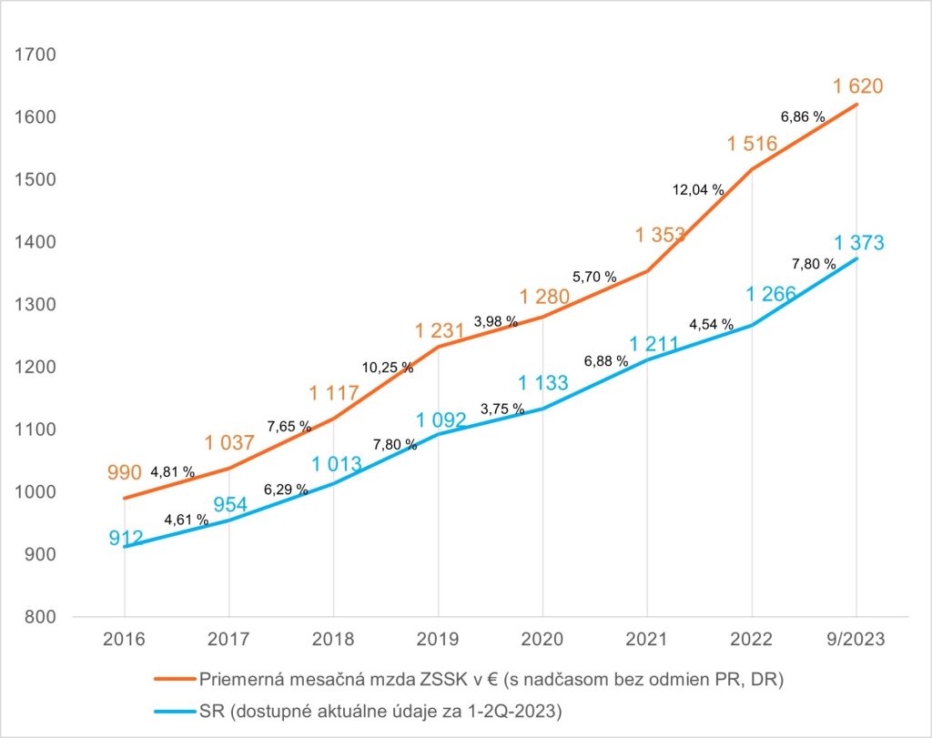 Vďaka kolektívnej zmluve pre roky 2022 – 2023 sa od januára 2022 zvýšili mzdy všetkých zamestnancov ZSSK s tarifnými platmi. Zároveň s účinnosťou od 1. 5. 2023 došlo k ďalšiemu zvýšeniu o 150 eur mesačne, a to pre všetkých zamestnancov ZSSK. Priemerný plat rušňovodiča bol v roku 2022 viac ako 1 800 eur. Tento rok by podľa odhadov mal priemerný plat rušňovodičov stúpnuť až na cca 1 997 eur*.