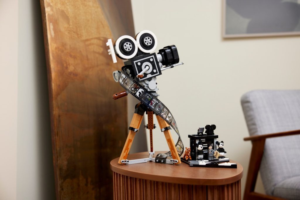 Táto detailne prepracovaná zberateľská stavebnica obsahuje historickú filmovú „kameru“ so zadným panelom, ktorý možno odklopiť a odhaliť tak filmový pás, na ktorom uvidíte zábery z 20 klasických filmov z dielne štúdia Disney, režisérsku klapku a priestor pre 3 minifigúrky LEGO ǀ Disney, 2 figúrky LEGO zvieratiek a viacúrovňovú kameru s 3 obrazovkami z papiera, ktoré zobrazujú, ako sa natáčal krátky film Starý mlyn.