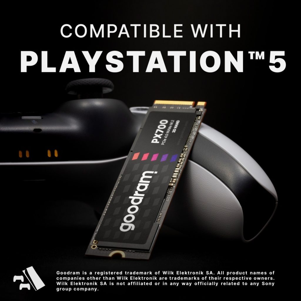 SSD disk Goodram PX700 splňuje nejpřísnější požadavky pro rozšíření paměti herních konzolí PlayStation™. Ty mají z výroby omezenou paměť, což může ztížit např. ukládání většího počtu her. Zapojením SSD disku PX700 si uživatel vylepší načítání her, uživatelský komfort i výkon konzole při hraní her.