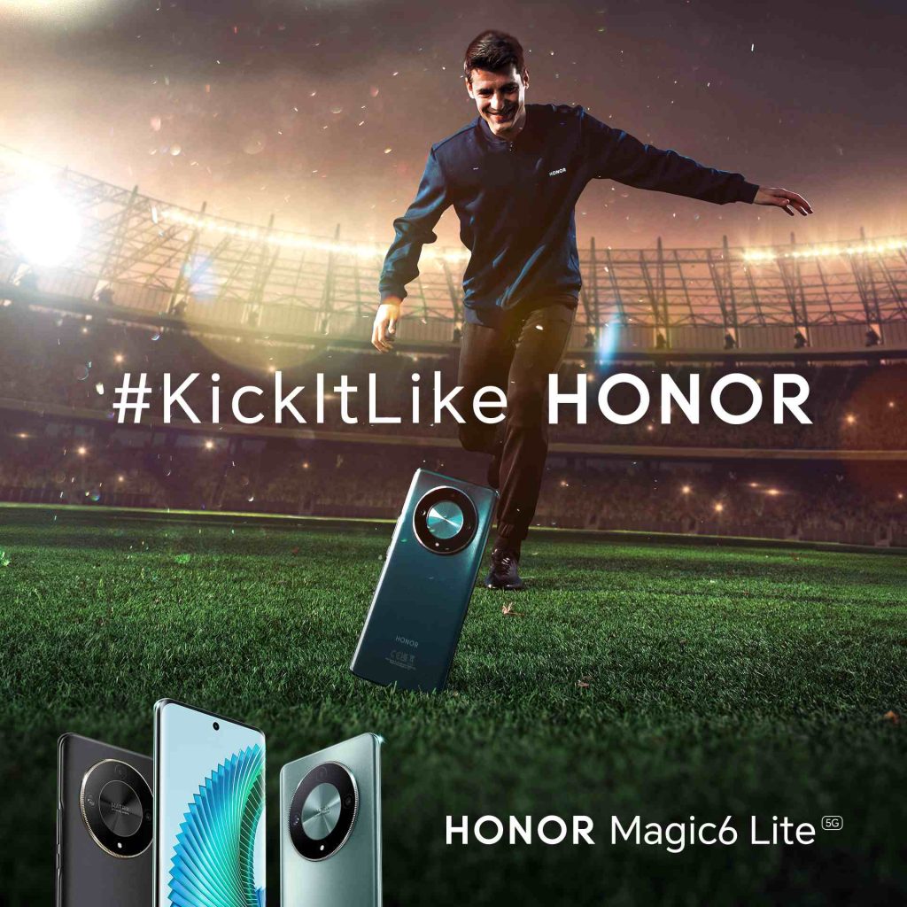 Prémiová technologická značka HONOR sa spojila s futbalovou hviezdou Álvarom Moratom, aby spoločne predviedli bezkonkurenčnú odolnosť a inovatívne funkcie smartfónu HONOR Magic6 Lite. Kampaň „#KickitLikeHONOR s #HONORMagic6Lite“ využíva futbalové majstrovstvo Álvara Moratu. Cieľom je poriadne preveriť tento špičkový telefón.