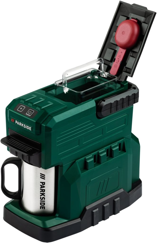 Kávovar „PKMA 20 Li A1“ okamžite premení akýkoľvek pracovný stôl na obľúbenú kaviareň – dokonca aj bez elektrickej zásuvky. Robustný kávovar od PARKSIDE totiž namiesto elektriny poháňajú výkonné dobíjacie batérie zo série „PARKSIDE X 20 V Team“. To znamená, že prístroj spoľahlivo pripraví vašu obľúbenú kávu aj na stavbách či vašich chatách bez elektrického napájania.