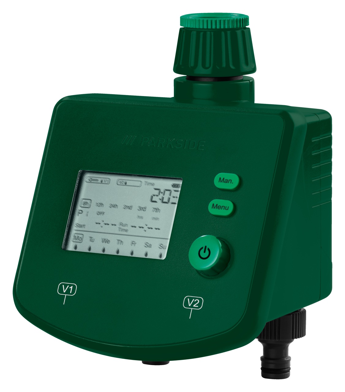 Zavlažovací počítač je počas leta veľmi praktickým pomocníkom na spoľahlivé a automatické zavlažovanie vášho trávnika či záhrady. Získavate ním drahocenný čas a flexibilitu venovať sa niečomu inému. Dvojitý výpust umožňuje zavlažovanie dvoch rôznych priestorov v záhrade súčasne. Každý výpust je možné naprogramovať na 10 nezávislých časov. Jeho inštalácia je jednoduchá a ovládanie intuitívne. Je vhodný pre bežné vodovodné kohútiky so závitom 33,3 mm, vrátane adaptéra na závit 26,5 mm. Nacvakávací systém Parkside je vhodný na bežné hadicové systémy. Počítač má tiež pamäťovú funkciu. Je vyrobený na 56 % z recyklovaného materiálu a je veľmi dobre odolný voči UV žiareniu.