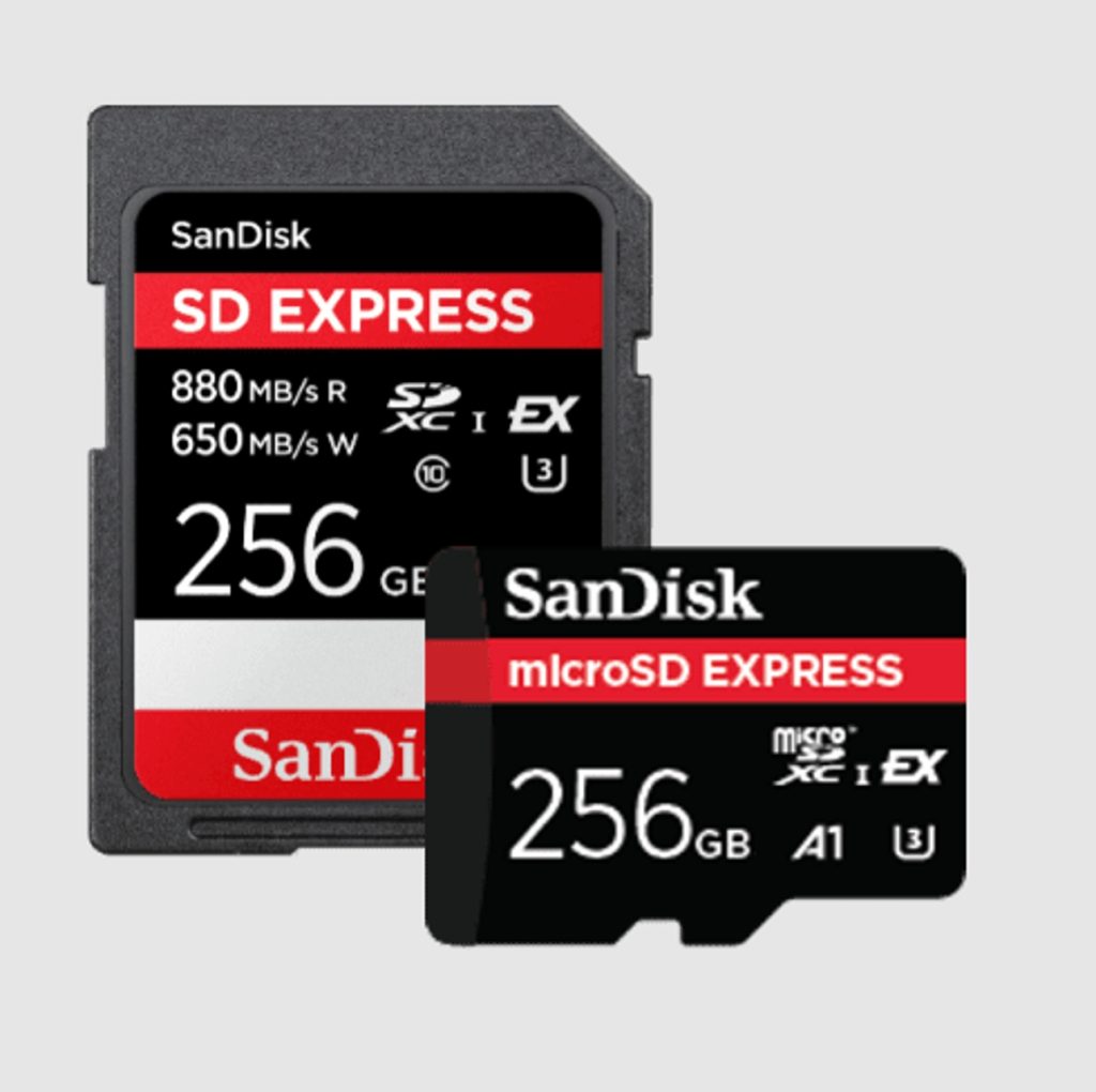 SanDisk® microSD™ Express (128 GB / 256 GB) – Až 4,4krát vyššia prenosová rýchlosť než doposiaľ najrýchlejšia karta microSD™ UHS-I spoločnosti Western Digital2. Karta SanDisk® microSD Express ponúka bezprecedentnú rýchlosť, úložisko a výkon pre profesionálov, ktorí sa zaoberajú intenzívnymi pracovnými postupmi. Táto karta microSD je taktiež spätne kompatibilná na použitie s dnešnými zariadeniami.