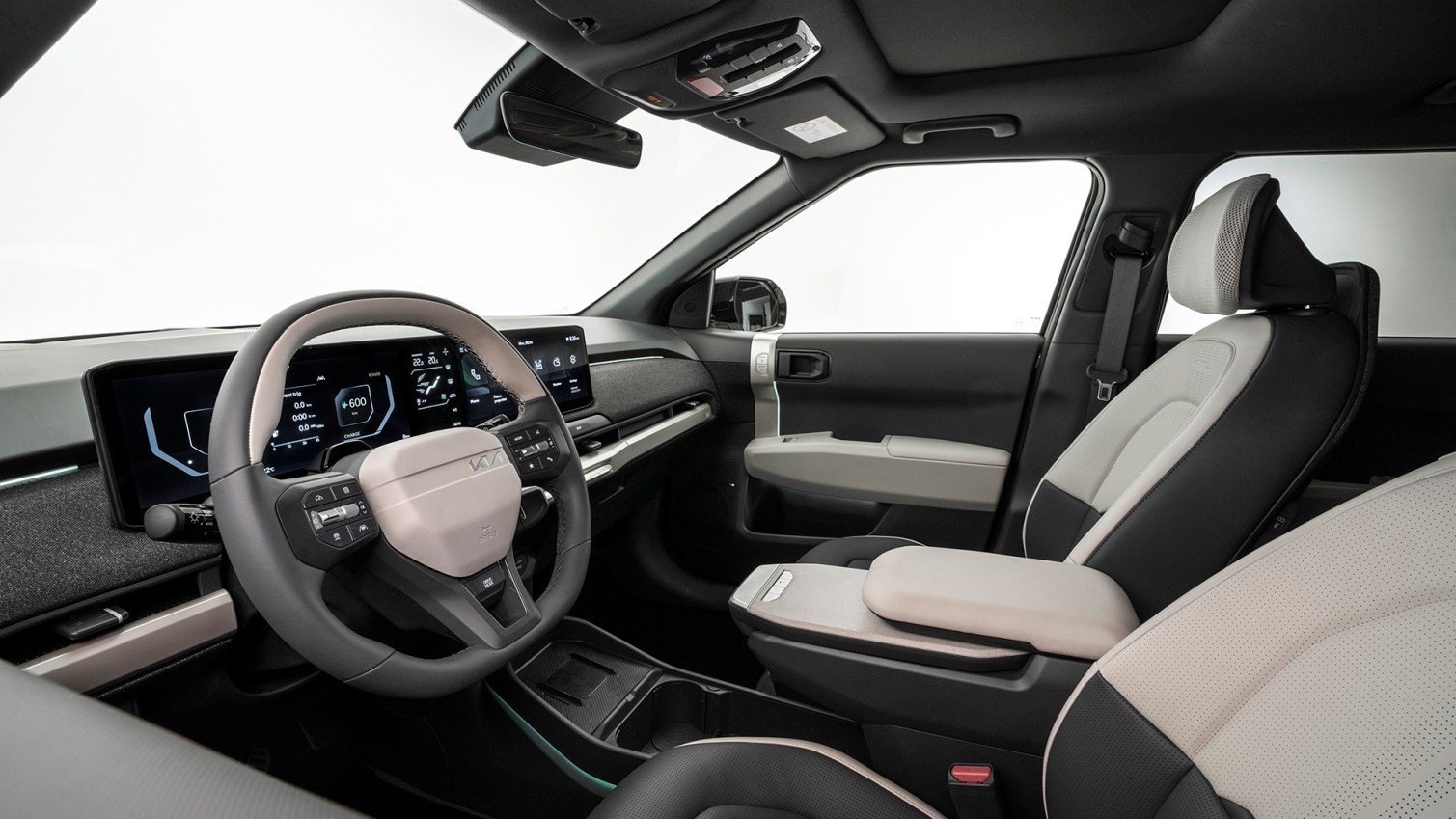 Interiér modelu EV3 ponúka priestrannú kabínu, v ktorej sa pohodlne usadí päť osôb. Vychádza z hodnôt dizajnovej filozofie „Zjednotenie protikladov“ spoločnosti Kia. Cieľom je previesť cestujúcich za hranice obyčajnej cesty z bodu A do bodu B na vyššiu úroveň pohody. Precíznym a jednoduchým spojením protichodných vplyvov vytvorila Kia vysoko funkčnú a efektívnu kabínu, ktorá vyžaruje atmosféru príťažlivosti a trvácnosti, ktorú si cestujúci môžu vychutnať na každej ceste.