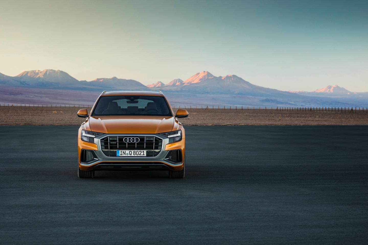 Model Q8 sa štandardne dodáva so svetlometmi LED. Ako nadštandardná výbava sú k dispozícii svetlomety HD Matrix LED, ktoré majú 24 LED diód a jednu vysoko-výkonnú laserovú diódu v každom svetlomete. To umožňuje optimálne osvetlenie jazdného pruhu a cielené maskovanie protiidúcich vozidiel a vozidiel vpredu, čím sa zvyšuje bezpečnosť na cestách. Špeciálnou novinkou je možnosť výberu štyroch rôznych digitálnych vzorov denného svietenia. Umožňuje to kryt denného osvetlenia s dvojitou mikroštruktúrou, ktorý spoločnosť ZKW vyvinula spolu s vývojovým tímom Audi.