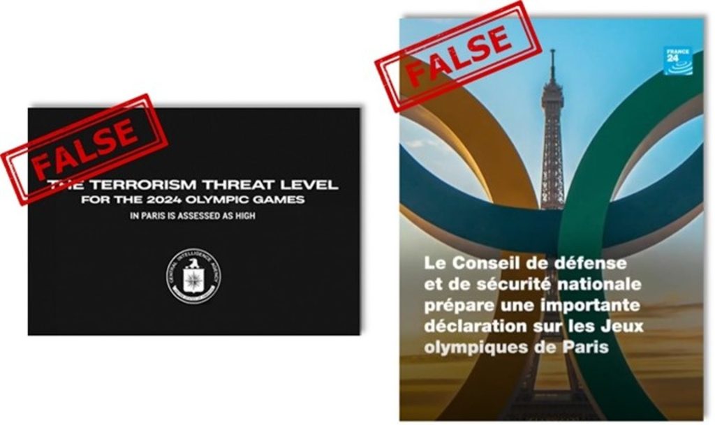 - Boli vytvorené falošné videozáznamy, ktoré sa tvárili, že pochádzajú od americkej CIA a francúzskeho Generálneho riaditeľstva pre vnútornú bezpečnosť (DGSI), a varovali potenciálnych účastníkov, aby sa vyhli olympijským hrám 2024 v Paríži z dôvodu údajného rizika teroristického útoku.
