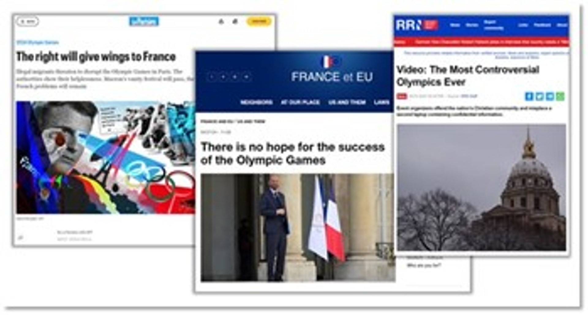 Obr. 4: Výber z protiolympijských správ skupiny Storm-1099 vrátane jej hlavného dezinformačného zdroja Reliable Recent News (RRN).