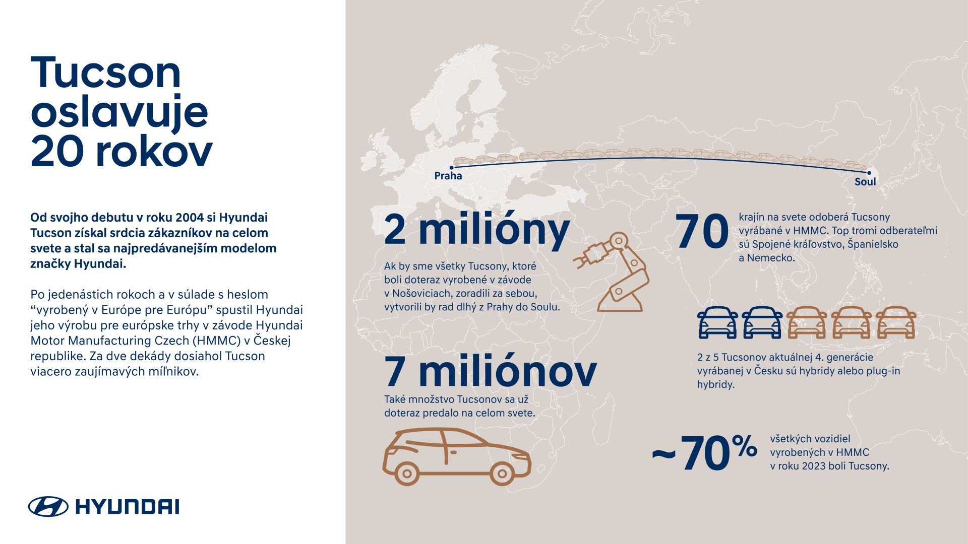 - Závod Hyundai Motor Manufacturing Czech v českých Nošoviciach vyrobil už dva milióny kusov SUV modelu Tucson.