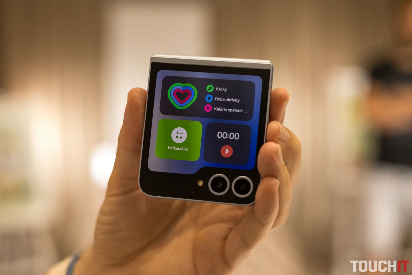 3,4″ vonkajší displej Super AMOLED FlexWindow[xx] bol opäť vylepšený a umožňuje používať funkcie s podporou umelej inteligencie bez toho, aby bolo nutné smartfón roztvoriť. Pri komunikácii na cestách môžete na správy odpovedať pomocou funkcie Návrhy odpovedí[xxi], ktorá analyzuje vaše posledné správy, navrhuje vhodné odpovede a umožňuje komunikáciu len jednou rukou. S Galaxy AI môžete svoje vreckové zariadenie využívať na maximum a mnoho z týchto užitočných funkcií je k dispozícii aj na vonkajšom displeji FlexWindow. Tento displej umožňuje napríklad prístup k aktualizáciám a oznámeniam aplikácie Samsung Health[xxii] alebo výber ďalšej skladby, ktorú chcete počúvať, na widgete prehrávača. FlexWindow teraz ponúka ešte viac widgetov (miniaplikácií) a umožňuje sledovať informácie z niekoľkých widgetov súčasne.
