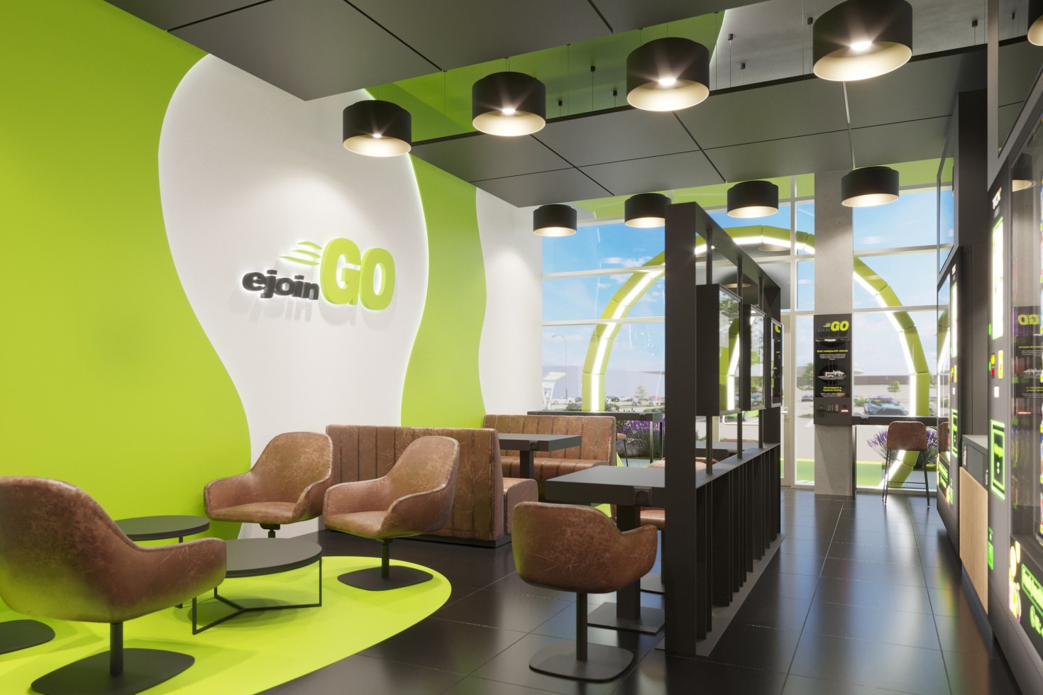 Za štúdiou stoja architekti z TATRA ATELIÉR, ktorí pri návrhu mysleli najmä na budúcnosť, udržateľnosť a inteligentné riešenia: „Nabíjanie bude vďaka ejoin GO „zážitkové“ v pozitívnom zmysle slova a čakanie bude môcť vodič stráviť aj v objekte s kaviarňou, pekárňou a obchodom upriameným na potreby zákazníka. Interiér v zemitej hnedej, zelenej a bielej spríjemní klientovi čas,“ dopĺňa riaditeľ ateliéru, Cyprián Gura.