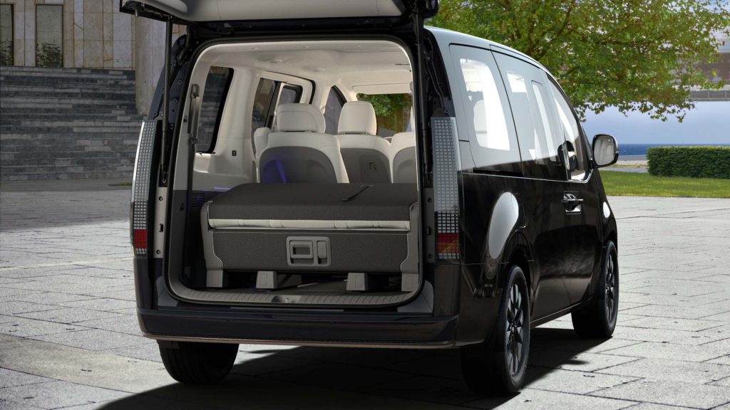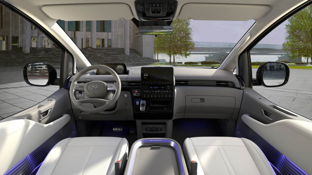 Hybridná Staria sa predáva v dvoch verziách. Vo výbave Premium ponúka 9 miest so zameraním na efektívne a praktické využitie vnútorného priestoru. Batožinový priestor má základný objem 831 litrov, ktorý sa po sklopení a posunutí sedadiel zväčší až na 1 303 litrov.