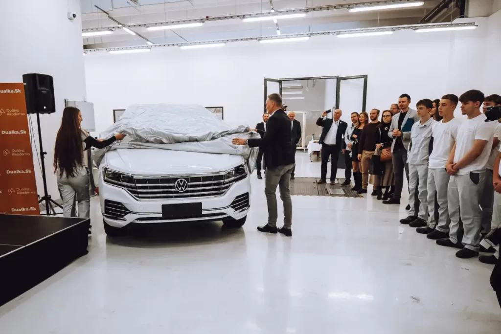 Duálnu Akadémiu podporila aj spoločnosť Volkswagen Slovakia, ktorá darovala škole automobily Volkswagen Touareg a Volkswagen up! pre potreby vzdelávania mladých talentov. „Volkswagen Slovakia je priekopníkom duálneho vzdelávania na Slovensku. Tak ako sme stáli v roku 2016 pri založení Duálnej Akadémie, tak zostávame jej nezastupiteľným partnerom i v týchto náročných časoch. Prajem si, aby venované vozidlá poskytli odborný technologický základ a prispeli k výchove špičkových odborníkov, ktorí tak veľmi v automobilovom priemysle aktuálne chýbajú,“ uviedol Wolfram Kirchert, predseda predstavenstva a člen predstavenstva pre technickú oblasť vo Volkswagen Slovakia.