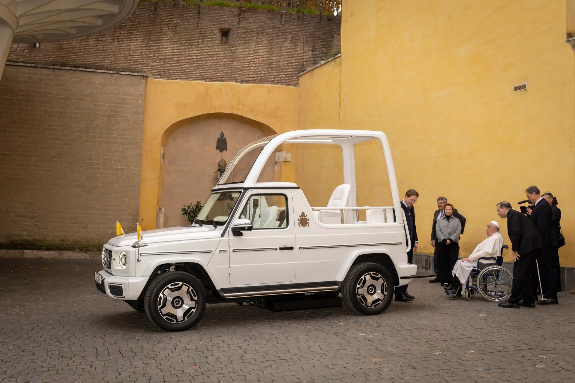 Už 94 rokov dodáva výrobca automobilov Mercedes-Benz automobily do Vatikánu – pápež používa známe papamobily Mercedes-Benz, ktorých základom je Trieda G, už približne 45 rokov. Teraz bude papamobil od značky Mercedes-Benz prvýkrát čisto elektrický: výkonný riaditeľ Mercedes-Benz Ola Källenius a zúčastnení členovia tímu vo Vatikáne osobne odovzdali pápežovi Františkovi unikátny automobil, ktorého základom je nová elektrická Trieda G.