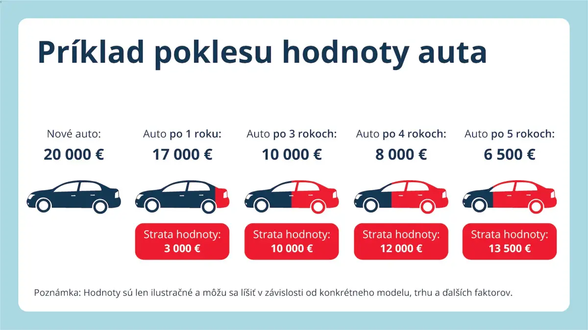 - rastúca konkurencia medzi výrobcami, ktorá tlačí ceny nových vozidiel nadol, čo znehodnocuje jazdené autá ešte rýchlejšie.