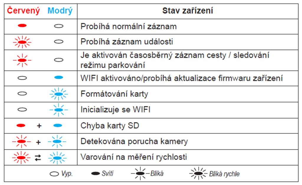 LEDkové a zvukové upozornění na různé situace a při ovládání kamery.