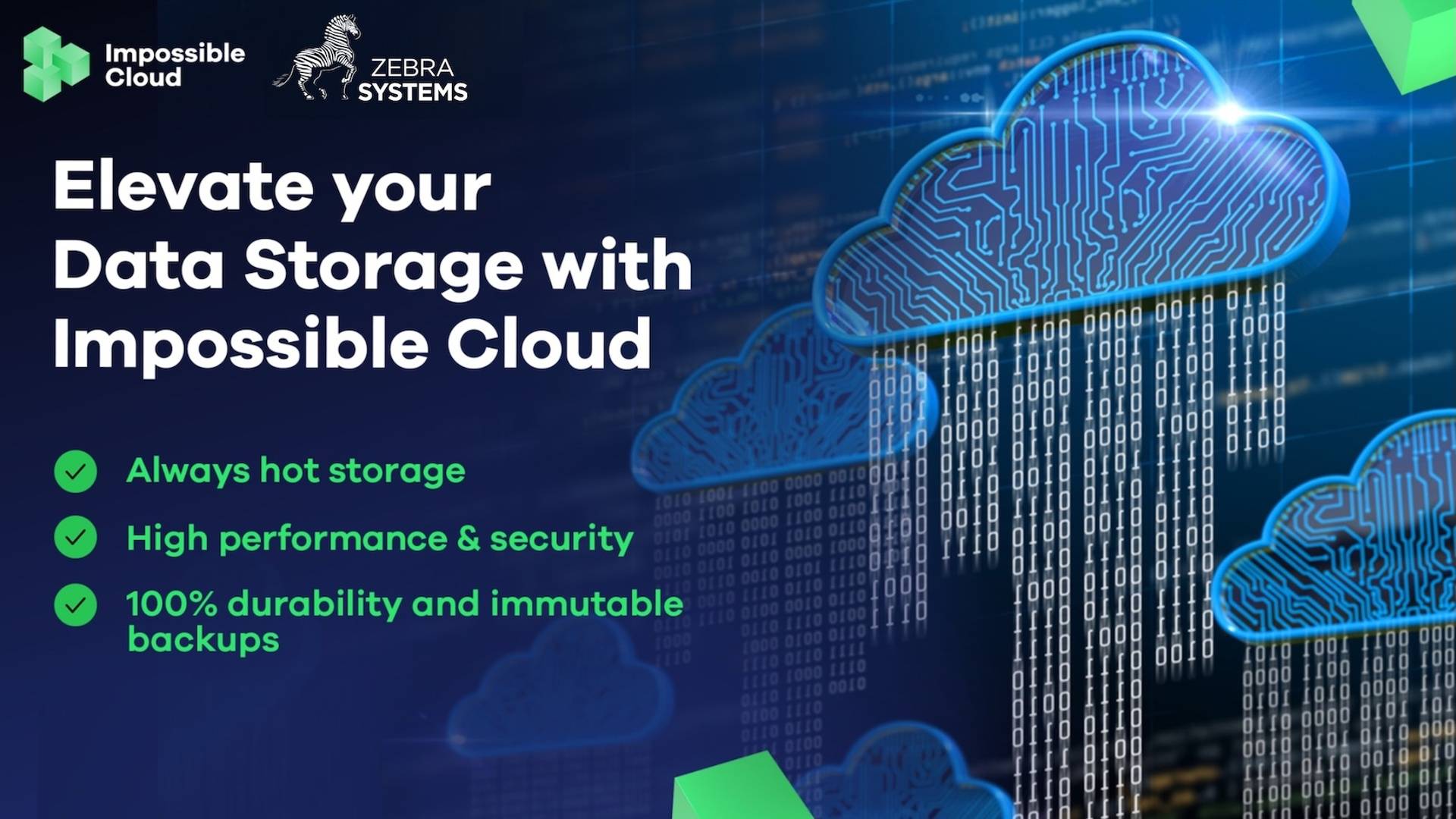 Spoločnosť ZEBRA SYSTEMS, popredný distribútor IT bezpečnosti a ochrany dát s pridanou hodnotou, oznámila, že do svojho portfólia zaradila Impossible Cloud, popredné európske riešenie pre cloudové úložisko. Toto riešenie ponúka podnikom a organizáciám úložisko pre veľké objemy dát, zálohy a archívy s podnikovou úrovňou zabezpečenia a širokou kompatibilitou.