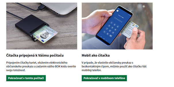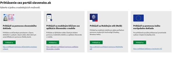 - Prihlásiť sa pomocou slovenského dokladu