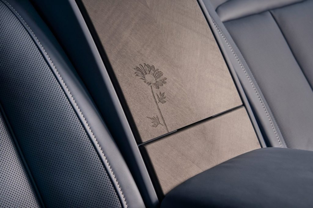 Motív sedmokrásky pokračuje aj v kabíne, kde zdobí obklad palubnej dosky a priestor medzi zadnými sedadlami nazývaný Waterfall. Dekoratívny prvok na dreve Blackwood sa vytvára precíznym pieskovaním. Veľmi rýchlym prúdom jemného piesku dochádza k mikroskopickému obrusovaniu povrchu dreva, hrou svetla a tieňa potom na vytvarovanom povrchu vzniká priestorový efekt, ktorý vizuálne oživuje hotové dielo.