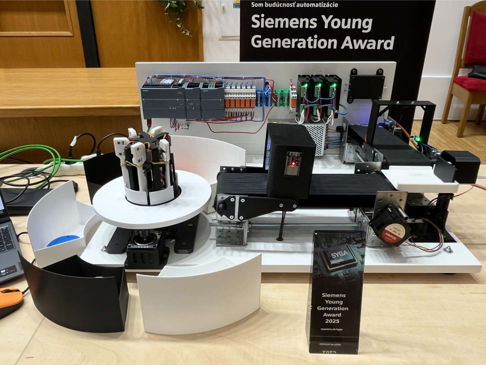 Hlavnú cenu SYGA získali Peter Salbot a Jaroslav Šubjak, žiaci zo Strednej priemyselnej školy elektrotechnickej na Hálovej ulici v Bratislave za svoj návrh univerzálnej triediacej linky. Tí navrhli riešenie na problém, s ktorým sa potýka prakticky každý výrobný podnik, ktorý na jednej linke produkuje viacero rôznych súčiastok. Odborná porota obzvlášť vyzdvihla aj odbornosť žiakov pri diskusii o jednotlivých častiach riadiaceho programu ich prototypu.