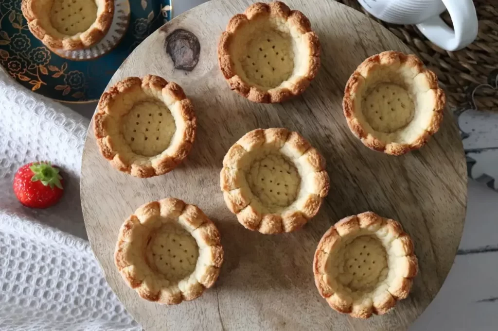 - Vykrojené těsto vložte do formy na tartaletky nebo jako my do formy na cupcakes. Tartaletky pečte v troubě do zezlátnutí okrajů. Bude to trvat přibližně 20 minut. Pečte při 175 stupních. (Po 10 minutách pečení můžete propíchnout dna tartaletek vidličkou, aby se příliš nenafukovala.)