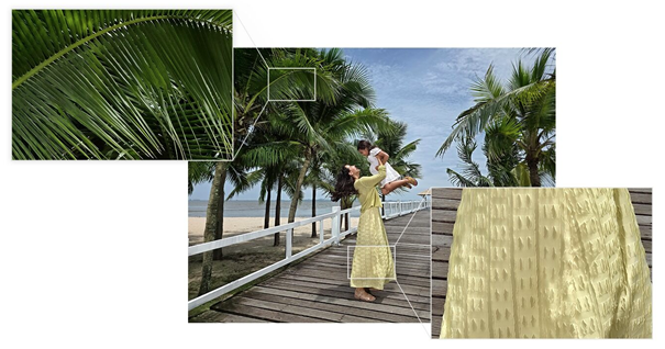 - Výbava zahŕňa dvojnásobný zoom v optickej kvalite, ktorý zachováva kresbu detailov aj pri orezávaní snímok.