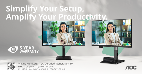 Společnost AOC, specialista na monitory, hrdě představuje svou řadu Professional P4, pečlivě sestavenou linii business monitorů navržených speciálně pro profesionální prostředí. Řada P4 reaguje na měnící se potřeby dnešních zaměstnanců a nabízí obnovovací frekvenci 120 Hz u všech modelů, snadno přístupný vysouvací USB hub včetně vyhrazeného portu USB-C a hardwarovou technologií s nízkým vyzařováním modrého světla s certifikací TÜV Eye Comfort.