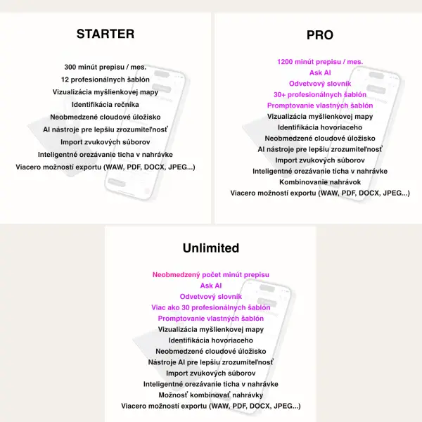 - 300 minút bezplatného prepisu mesačne