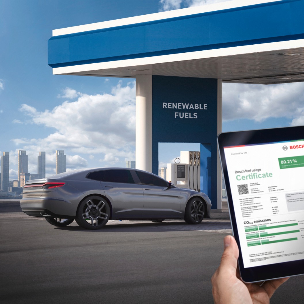 Digitálny doklad o obnoviteľných palivách: Okrem elektrických vozidiel môžu emisie uhlíka z cestnej dopravy znížiť aj hybridné vozidlá. Preto Bosch pokračuje vo vývoji technológie vstrekovania a čistenia výfukových plynov pre spaľovacie motory. Okrem strong a plug-in hybridov sa elektrické vozidlá s predĺženým dojazdom stávajú čoraz bežnejšími, najmä v Číne. Používanie obnoviteľných palív v hybridných vozidlách ich robí oveľa šetrnejšími k životnému prostrediu. Dôkaz o tom, že sa takéto palivá nachádzajú v nádrži, môže poskytnúť cloudové riešenie spoločnosti Bosch – Digital Fuel Twin, ktoré navyše ukazuje, o koľko menej bolo vyprodukovaného CO2.