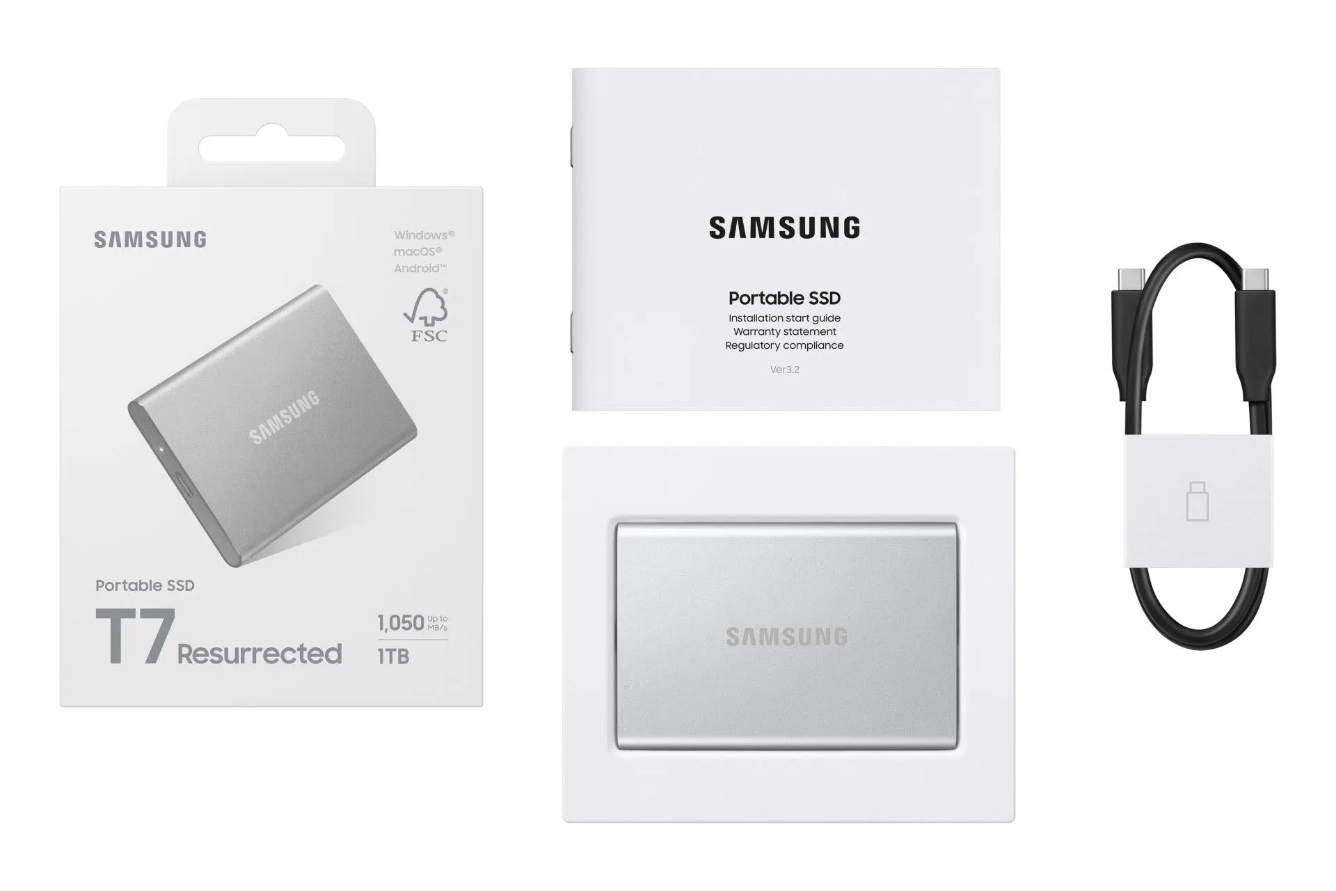 Na rozdiel od predchádzajúcich SSD diskov sa telo T7 Resurrected vyrába z plne recyklovaného hliníka s certifikátom spoločnosti TÜV Rheinland[2]. Hliník pochádza z výroby mobilných zariadení Samsung Galaxy, nový SSD disk teda vznikol vďaka cirkulácii zdrojových materiálov naprieč divíziami. Z ekologických dôvodov odpadlo aj farbenie, disk má preto prírodný odtieň hliníka, výroba bola jednoduchšia a využitie chemikálií sa pri nej znížilo na minimum. Aj balenie je vyrobené z plne recyklovaného papiera, potlačeného sójovým atramentom s certifikáciou ASA[3]. Vďaka týmto udržateľným výrobným postupom získal disk T7 Resurrected cenu za inovácie na veľtrhu CES 2026 v kategórii Sustainability & Energy.