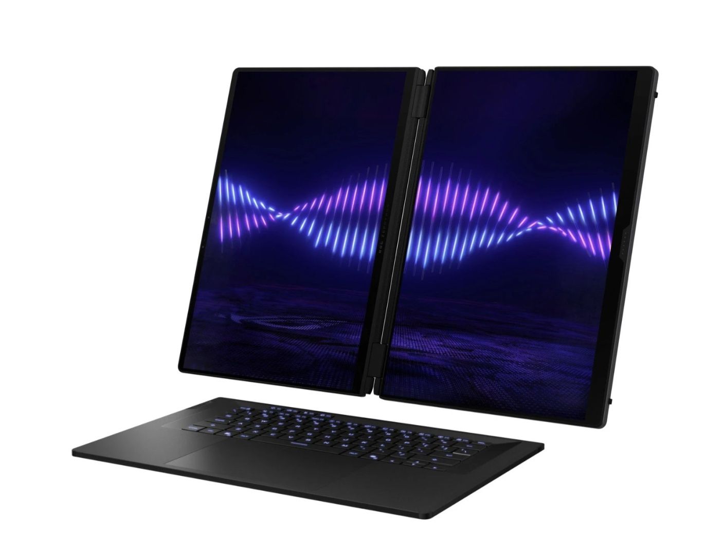 Zephyrus Duo je prvý 16-palcový herný notebook na svete s dvoma displejmi. Vďaka dvom dotykovým 3K ROG Nebula HDR OLED displejom dokáže vytvoriť pracovnú plochu o veľkosti viac než 21 palcov a nanovo definuje možnosti prenosnej pracovnej stanice. Oba panely disponujú odozvou 0,2 ms a obnovovacou frekvenciou 120 Hz. Hlavný displej podporuje technológiu NVIDIA® G-SYNC®, čo zaručuje plynulý obraz s minimálnym rozmazaním pri hraní hier. Vďaka maximálnemu jasu 1 100 nitov a certifikácii VESA DisplayHDR™ True Black 1000 vyzerajú HDR hry aj obsah mimoriadne pôsobivo.